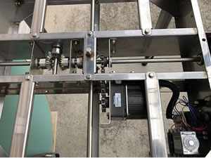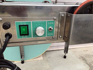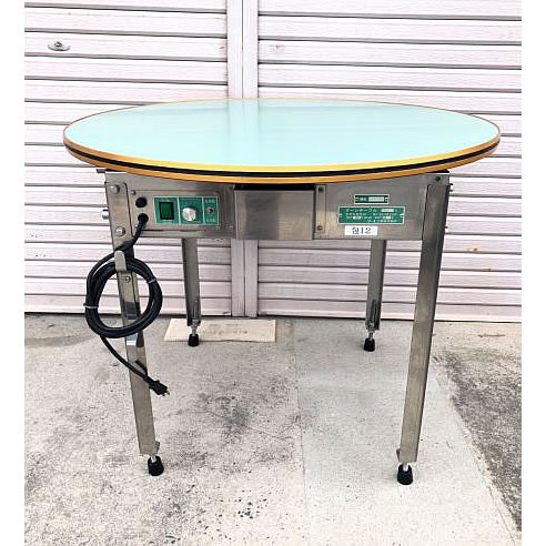 | コンベア等の末端に設置するだけで、商品の積み重なりを防げます。 作業状態に応じた、左右回転切替・回転速度が自由に選べ、さらに効率アップ。 ■特長 ●4駆動ホイル式回転「実用新案登録済」を採用。 低騒音、省エネを実現した、シール加工作業に欠かせない回転式テーブルです。 ●独自の回転駆動を採用した新機構 4駆動ホイル方式より、安定したテーブル回転を実現しました。 また、安全性にも優れ、テーブルの側面に負荷が加わると、モーターの回転はアイドリング状態になり、テーブルだけが停止する設計です。 注意)長時間アイドリング状態でテーブルの回転を止めないで下さい。 モーターの破損につながります。 ●低騒音、省エネ設計 ●回転方向切替、回転速度調節機能 簡単なスイッチ操作で左回転、右回転を変更する事ができます。 ・0~6.5回転/60Hz ・0~5.2回転/50Hz ![]() ●簡単なメンテナンス テーブルと駆動部分本体が脱着できるので、容易にメンテナンスが行えます。 ■外形寸法(mm) ![]() ![]() ■仕様