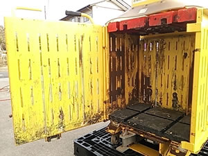 | ■使用例 製造工場・物流センター・自治体リサイクルセンター・小売店・病院・ホテル等 ![]() ■特殊用途 生け花やフラワーアレンジメントなどで使用される「吸水フォーム」の圧縮。 ●1回の処理個数:約51個(下記写真参考) ●圧縮(脱水)後:約1/5 <テスト結果> ブロック1個あたり約2Lの水分が含まれていましたが、処理後は握りつぶしても水分が出なくなるまで脱水が出来ました。 ![]() ■仕様
