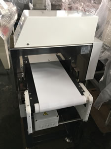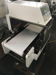 ベルトにて搬送されるワーク中に含まれる金属成分を検出し、報知する装置です。
