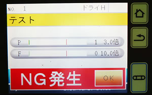 通電後、商品の登録をして、金属片を通して、NGが出てコンベアーが止まることを確認してます。