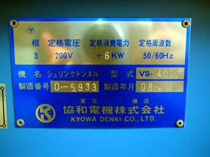 | 商品番号 | VS-400C(2008年製) | 価 格 | ||||||||||||||||