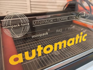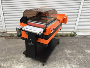 ラジエーター・フィルム巻取装置、熱風ファン急停止など便利な機能が標準装備 した主リンク包装機 | 中古自動一体型シュリンク包装機 品番 FM-76A 問い合わせ番号 Z-0878-6 |