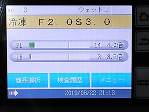 | ■簡単操作 ●大型5.7インチカラー画面タッチパネル搭載。 (国内業界初)イラストや機能説明によるナビゲートで、分かり易く操作できます。 タッチパネルは、直観的な操作で機械の設定ができ、快適に使えます。 ![]() ●商品に最適な検査モードを自動的に選択。 難しかった検査モードの選択は、機械が自動で最適なものを選びます。 ![]() ■充実の管理機能 ●アクセスモード選択 誤って設定を変えられないように、メニューにアクセスできる権限を設定できます。 ●USBデータ管理(オプション) USBで検査履歴をパソコンに移して利用できます。 ●ネットワークによるデータ管理(オプション) LAN接続によって、複数台の機械のデータをパソコンで管理できます。 ![]() ■高感度 ●磨かれた基本性能 商品の影響をカットし、感度をアップさせる「ECP機能」搭載。 特に、水分や塩分を多く含んだ商品影響の強い物の検査時に威力を発揮します。 ![]() ●2周波検査技術を搭載 2周波検査により、鉄系と非鉄系、両方の異物を同時に感度良く検出可能。 (2周波検査技術は当社が初めて量産機に搭載し、10年の実績があります。) ![]() ■安定検査 ●誤作動排除を徹底追及 ・商品の形状や温度、検査コイル内を流れる位置の変化が原因の誤作動を徹底的に抑え込む「位相追従機能」搭載 ・コイルケースの厚みを十分確保し、外部ノイズの影響をシャットアウト ・物理的振動に強い機械構造と、独自の振動フィルター搭載 ![]() ■清掃性 ●HACCP対応 ・HACCP対応のオールステンレス仕様 ・コンベアはワンタッチで外して洗えます。 ・汚れを落としやすいフレーム構造を採用 ・防塵、防水規格IP65をクリア(Wタイプ) ・水もののラインにも高感度対応。水洗いも可能です。 ![]() ![]() ■菓子小袋など、小物の検査に 通過幅30cm未満まで対応 ![]() ■外形寸法