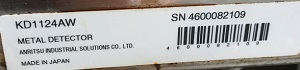 | 中古金属検出機非防水(中型)/品番 KD8124A 問い合わせ番号 Z-0882-8 |