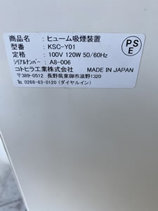 中古ヒューム吸煙機 品番 KSC-Y01 問合せ番号 Z-0889-5 |