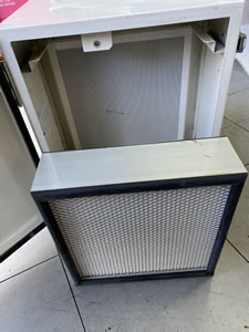 | ■用途 ●はんだ付け作業で発生するヒュームの除去(下記写真) ●レーザー加工(マーキング、カッティングなど)で発生するヒュームの除去 ●その他、作業環境における局所吸煙に使用できます ![]() ■特徴 1) 微粒子成分の捕集 高性能フィルタにより0.3μmまでの粒子を95%以上除去 2) 消臭効果 活性炭フィルタにより臭い成分を除去 3) コンパクト設計 キャスターも付いており、移動・設置が容易 4) メンテナンスが簡単 差圧計によりフィルタ管理が容易に行えます。また、フィルタ交換は工具不要です。 ■はんだヒュームについて はんだから発生するヒューム(煙)に含まれる有害物質(粒子)の大きさは、一般的に0.05~10μmと言われていま す。その中で特に人体に危険とされる粒子の大きさは0.5~5μm(肺の中に蓄積される大きさ)とされています。 これらの有害物質は刺激性物質が多く含まれ、咽喉や目などの痛み、喘息などの症状を発生させます。また、人体 への接触により皮膚への刺激やアレルギーなどの症状も発生させることもあります。はんだ付け作業において吸煙 装置等、環境改善機器の設置が推奨されています。 ![]() ■フィルター構成 1) プレフィルター…10μmまでを90%以上捕集 2) 準HEPAフィルター…0.3μmまでを95%以上捕集 3) 活性炭フィルター…ニオイ成分を捕集 ■仕様