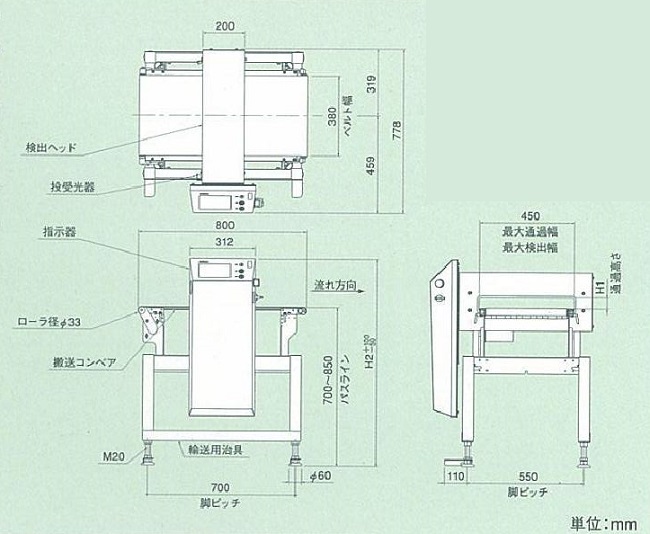 最大通過幅450mmの金属検出器 通過高さは4種類から選択できます。 |