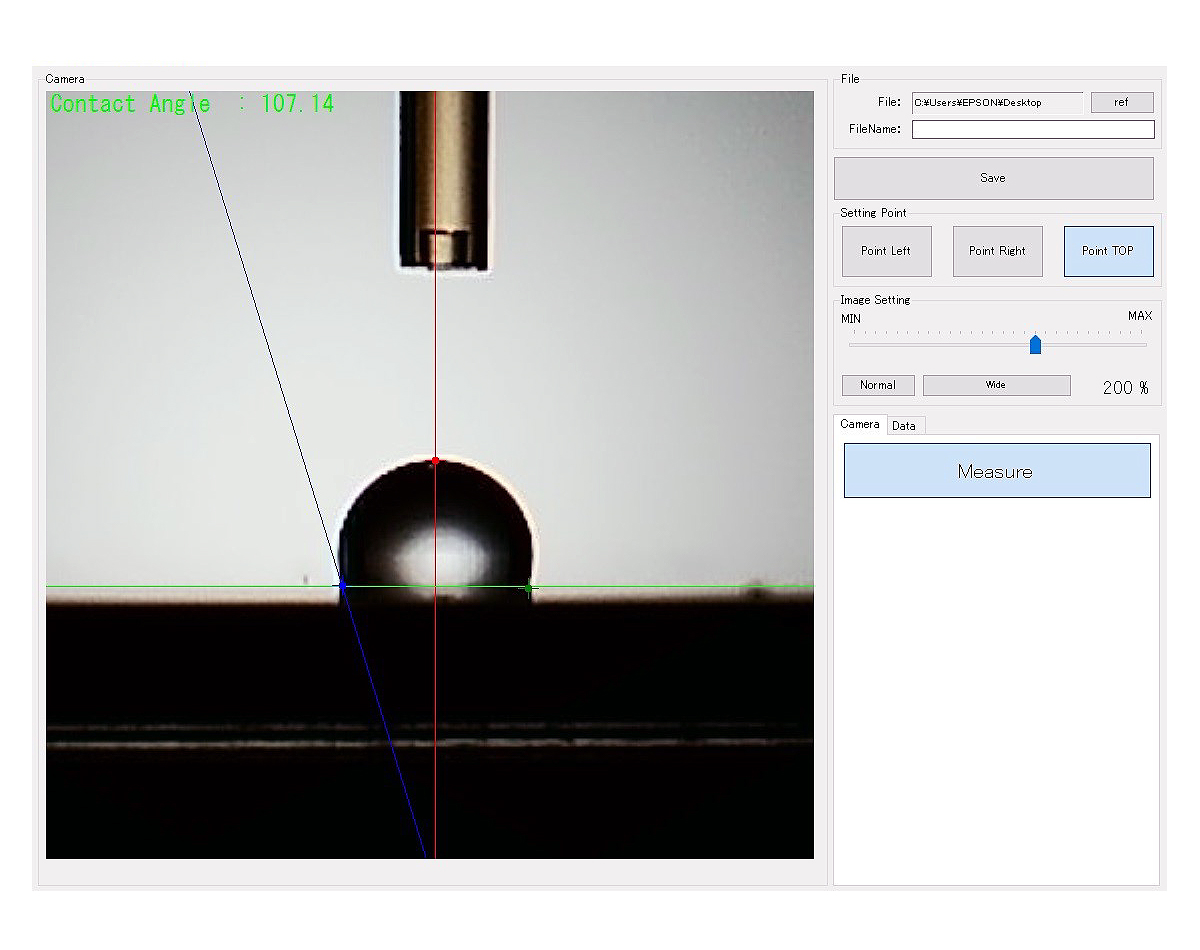 | ■特長 ●JIS R3265 「基板ガラス表面の濡れ性試験方法」準拠接触角計 ●Windows10、8、7 対応 ●対象サンプルサイズ50×50mm ●静的接触角計測θ/2法(手動) ●データの外部出力や保存(png、csv) ●Z軸シリンジ高さ調整ディスペンサ ●専用バックライト ●日本製 ■接触角とは 試料表面へ水滴を滴下し、水の接触角を測定することにより試料表面評価を定量的に行うシステムです。接触角計測は、分子レベルの清浄度評価や濡れ性、均一性を定量的に評価します。Excelのcsvファイル出力、液滴画像のpngファイル保存が行えます。 ![]() ■使用例