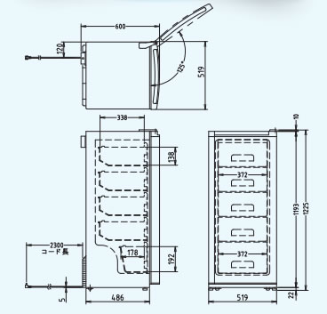 | ■M1059Aシリーズの収納目安 業務用2リットル アイスクリームバルクが1つの引き出しに4本収納! (4リットルバルクなら2本) ※最下段のみ2リットルバルクが2本となります ![]() 透明引き出し式なので、中身の確認・在庫整理にとても便利です! ■タイプ ●M1059A-6144 ・引き出し5段 ・温度調整ダイヤル ・キャスター付(後ろのみ) ![]() ●M1059A-6114 ・引き出し4段 ・温度調整ダイヤル ・キャスター付(後ろのみ) ![]() ●M1059B-91 高さ845mmのロータイプ ・引き出し3段 ・温度調整ダイヤル ![]() ●M1059A-6120FF 霜取り自動のファン式 ・自動霜取り機能 ・1ドア前開きタイプ ・5段タイプ(4つの引き出し付) ![]() ■寸法図