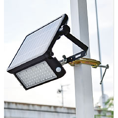 人感センサーで点灯するLEDセンサーライトです。 工具いらずで簡単角度調整 配線工事不要のソーラー充電です 周囲が暗くなると常時微弱点灯(明るさ30Lx以下)し、動きを感知すると100%点灯します。 |