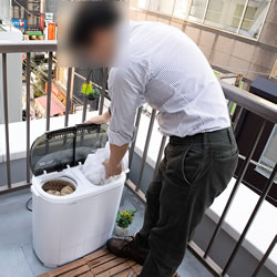 節水できる、洗いと脱水が同時にできる、大量洗濯に向く二槽式洗濯機。 別洗用洗濯機としてコンパクト小型化しました。 |