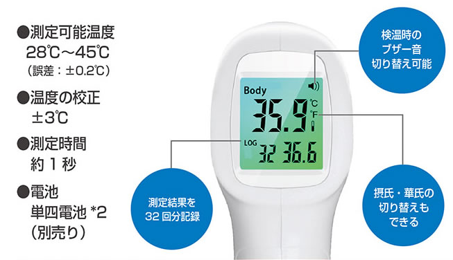 触れずに安心・簡単測定 ピピッと最短約1秒 推奨測定距離:約3~5cm |