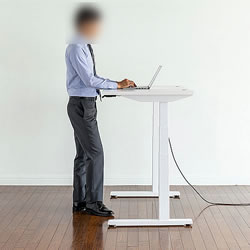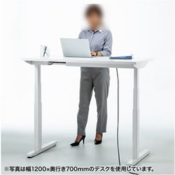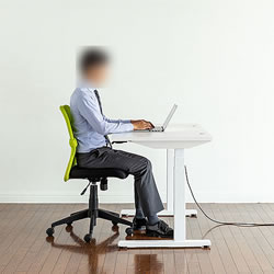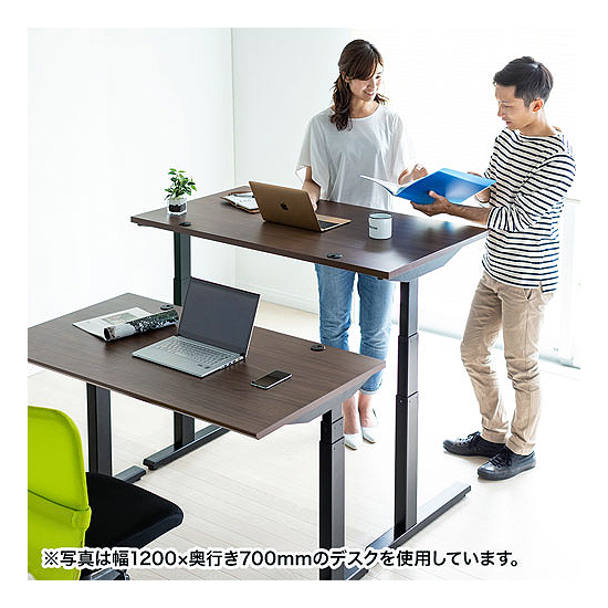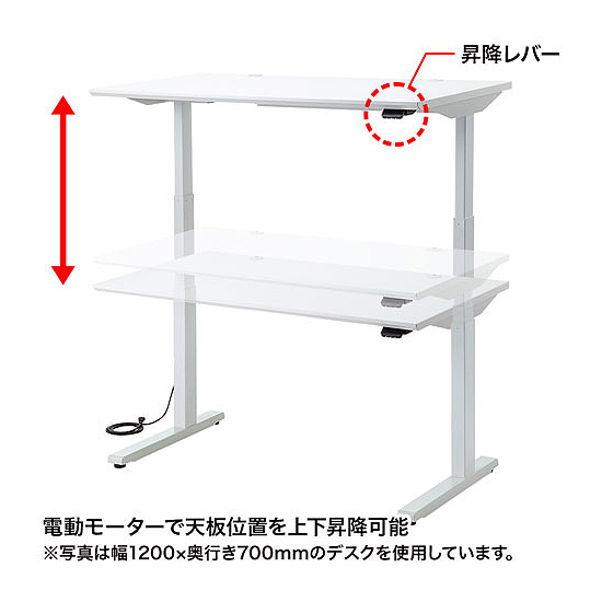 | ■特長 ●電動モーターにより天板位置を上下昇降させることができます。 ![]() ![]() ●天板位置は任意の位置で停止可能です。 ●天板は高さH630~1280mmまで可動します。 ●新採用の昇降用のスイッチは、ボタンを探さなくても感覚的に上げ下げができるレバータイプになっています。 ![]() ●昇降レバーにはBluetoothが内蔵されており、スマートフォンにインストールされた専用アプリやパソコンにインストールされたソフトウェアで操作や目標管理などが行えます。 ※Bluetoothを搭載したスマートフォン・ノートパソコンが必要です。 ●昇降の際はレバーを押し続けることで動作します。危険を発見したり、すぐに停止させたいと思った場合にはレバーから手を放すことで動作が停止します。 ●昇降レバーにはリマインダー機能があり、設定した時間になると赤色のLEDが点滅し、立つ時間を知らせます。 ●デスク下降時に障害物を検知し、挟み込みを防止する機能を搭載しています。障害物を感知すると瞬時に運転をやめ、自動的に位置を少し戻します。 ※この機能はデスク本体及び、対象物の破損を未然に防ぐものであり、人体への安全を考慮したものではありません。また全ての条件下において動作を保証するものではありません。 ![]() ●配線に便利なケーブル口付き。 配線口付きなのでディスプレイなどのケーブル類をきれいに配線できます。昇降時もケーブルが邪魔になりません。 ![]() ●選べる天板バリエーション 3タイプから天板が選べる。 ![]() ●天板のホルムアルデヒド放散基準値はF☆☆☆☆で、ホルムアルデヒドの放出量を軽減しています。 ●電気用品安全法(PSE)技術基準適合品です。 ![]() ■使用例 自分に合うデスクの高さにすることで、作業効率アップや気分転換などの効果が期待できます。また、周囲の人とコミュニケーションが取りやすくなります。 ![]() ![]() ![]() ![]() ■寸法図 ![]()