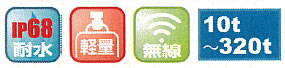 過積載管理、架装バランスチェック 最大320t 耐塵・耐水IP68完全防水 無線接続、小型・軽量 |