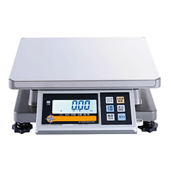 デジタルフラット台秤は、多機能でコンパクトな平面一体型の台はかりです。 縦長の台座を採用する台はかりが圧倒的に多い中、横長の台座を採用しためずらしい製品。 秤量は30kg/60kg/120kgの3種類。 |