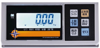 | ■特長 ●計量台に直接表示器を取り付けた平面一体型台はかり ●めずらしい横長の計量台を採用 ●計量台フレームの材質はアルミダイカスト ●内蔵充電バッテリーで長時間駆動 ●わかりやすい日本語ボタンと豊富な機能 ●持ち運びに便利なキャリーハンドルつき ![]() <搭載機能> ・起動時自動ゼロ点調整 ・ゼロ点調整 ・風袋引き ・表示値固定 ・正味重量/総重量表示切替 ・上下限重量値チェッカー ・バックライトつき液晶 ・水平器標準装備 ・内蔵バッテリーにより100時間以上連続稼動可能 <操作ボタン> ・ゼロ: ゼロ点調整 ・風袋引き: 風袋引き ・表示固定: 表示値の固定 ・上限/下限: 上下限値チェッカー ・正味量/総量: 正味重量と総重量の表示切替 ・バックライト: バックライトのON/OFF ■表示部と操作ボタン ![]() ![]() ■外径寸法図 ![]() ![]() ■仕様