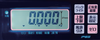 | ■特長 ●防塵防水性能IP65 ●高分解能15000分の1 ●バックライトつきの見やすい液晶画面 ●作業を支援する豊富な便利機能 ●ステンレス製トレイが標準で同梱 ■搭載機能 ●防塵防水性能IP65(粉塵・噴流に対する密閉性を保証) ●起動時自動ゼロ点調整 ●ゼロ点調整 ●風袋引き ●表示値固定 ●正味重量/総重量表示切替 ●上下限重量値チェッカー ●バックライトつき液晶 ●水平器標準装備(計量皿の下に配置) ●内蔵バッテリーにより100時間以上連続稼動可能 ![]() ![]() ■操作ボタン ![]() ●ゼロ: ゼロ点調整 ●風袋引き: 風袋引き ●表示固定: 表示値の固定 ●上限/下限: 上下限値チェッカー ●正味量/総量: 正味重量と総重量の表示切替 ●バックライト: バックライトのON/OFF ■寸法図 ![]() ■仕様