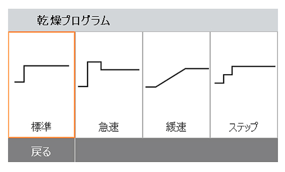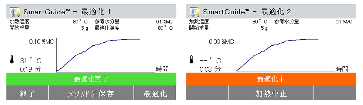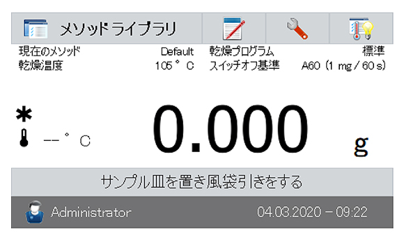 | タッチパネル操作の加熱式水分計 より早く、よりスマートにそしてより効率的に水分率測定を実現 ![]() ■特長 本製品は、すべての作業プロセスが早く、簡単にそしてより効率よく進められるように設計されています。より多くのサンプルを測定/分析でき、保存データのアクセスも簡単に行えます。短時間で測定結果の有効活用が可能となります。 ●SmartGuide SmartGuide(スマートガイド)は自動的にサンプルを分析しメソッドの作成プロセスを簡略化します。メソッド構築時の経験値や勘に基づく一連のプロセスを省略することができます。 ![]() ●早く、信頼性のあるハロゲン加熱テクノロジー ハロゲン熱源でサンプルを効率よく加熱し、従来からのオーブン式による乾燥減量法と比較して、短時間で効率よく測定結果が得られます。M1450HRB-120Aは1刻みで40~230まで加熱温度の設定が可能です。 ●正確で再現性のある結果 ヒーティングチャンバーにより各サンプルの均一な加熱が保たれ、信頼できる測定結果が得られます。 ●4つの乾燥プログラム 予めセットされた4つの乾燥プログラムでサンプルの加熱が可能です。 ・急速:目的の温度に可能な限り最速で到達します。 ・標準:目的の温度まで素早く到達するだけでなく、オーバーシュートを最小化します。 ・緩速:目的の温度まで時間と共に温度を上昇させます。 ・ステップ:目的の温度まで時間と共に温度を上昇させます。 ![]() ●フレキシブルなスイッチオフ基準 スイッチオフ設定は、様々なサンプルテストの実行に役立ちます。乾燥に伴う重量変化を自動的に検出し自動的にテストを終了します。もちろんご自身で自由に設定することも可能です。 ![]() ●メソッド・ライブラリ機能 最大100通りのメソッドを保存ができ、それを簡単に呼出、ほかのMB機器へ移行ができます。 ![]() ●測定結果の保存機能 最大1,000の測定結果を保存することができます。またその結果を印刷したり、USBメモリーヘエクスポートして、さらなる分析に活用が可能です。 ![]() ●ユーザー管理機能 ユーザー管理機能を利用することで、操作管理や承認されていないユーザーがアクセスして、意図しない設定変更ができないような管理が可能です。 ●RS232とUSBポート 簡単にプリンタ、パソコンやフラシュデバイスに接続可能です。 ●グラフィカルなタッチスクリーンディスプレイ 明るく、フルカラーで分かり易いグラフィックディスプレイにより、操作性抜群です。 ●アイコン表示によるわかりやすいメニュー・ナビゲーション 理解しやすく、訓練いらずで操作ができます。 ●4つのボタンも併せて配備 風袋引き、開始/終了、印刷、ON/OFF ●工具いらずで容易な清掃 ステンレススチールの表面は腐食に強く、汚れもすばやく拭き取れます。ヒーティングチャンバーコンポーネントも簡単に取り外し可能で簡単にクリーニングを行えます。工具は必要ありません。 ![]() ■その他の機能 ABSトップハウジング、ステンレス皿サポート、ステンレススチールハンドラー、表示部保護カバー、7つのスイッチオフ基準(プリセット時間の手動、時限、A30、A0またはA9、フリー%、フリーmg/s)、4つの加熱プログラム(急速、標準、緩速およびステップ)、13か国語対応(表示のみ、キー入力なし) ■寸法図 ![]() ■仕様