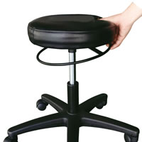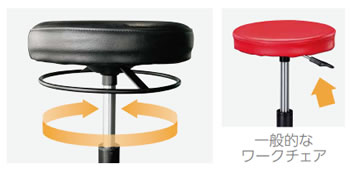 360°どの方向からも高さ調整可能なリングレバー式 | 360度回転ガス伸縮作業丸椅子 品番 M14A-1067XN42E |