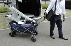 | ■特徴 ●駐車場から現場までの移動に◎ 工具・部材はもちろん、脚立などのかさばるものまでしっかり収納! ストッパー付の幅広タイヤで安定感のある運搬を実現! ●脚立や工具箱、パーツケースもしっかり収納! 一般的なキャリーカートに比べ収納容量が大 ![]() ●カラビナやフックがとりつけられるハトメ加工 ![]() ●コンパクト収納で車載にピッタリ!折りたたみ式 ![]() ![]() ●安定走行・安全に止めておけるストッパー付幅広タイヤ ![]() ■仕様