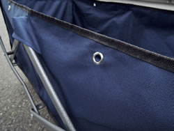 コンパクトに収納でき、車載するのに最適なキャリーカート 大容量タイプ。キャスターも幅広で安定感はあります。 前方に荷物を入れることにより旋回が楽です。 サイドにカラビナやフックを付けれるようにハトメ加工しています。 |