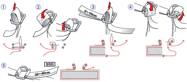 ■止金具セット方法 ![]() ●M15TAR25-16TH・M15TAR32-25THのセット ![]() ●M15B-**GH 荷締ベルト幅 ![]() ●ベルトの締め方 ![]() ![]() |