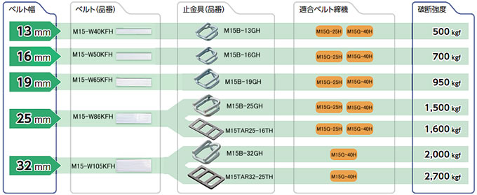 荷締ベルトハードタイプ(幅13mm×t1.3mm) 品番 M15-W40KFH 価格は下記をご覧ください |