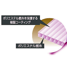 ポリエステル原糸を束ね、ポリプロピレンでコーティングした成形ベルト コーティングにより耐摩耗性に優れている。 直進性があり、パレットの下などの狭い所に通しやすい。 揺れや振動に強く、緩みにくい。 |