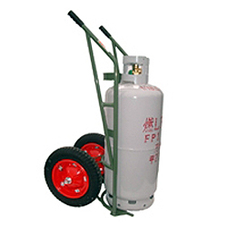 コンパクトサイズでありながら、強く、更に車幅も抑え狭い路地にも対応するプロパンガスボンベ運搬台車 | コンパクトプロパンガスボンベ二輪車50kg1本(大型車輪) 品番 M1500PG50-S326M 価格は下記をご覧ください。 |