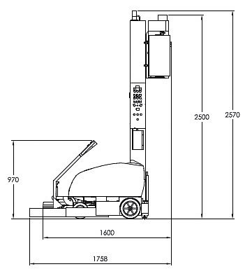 | ■特徴 ●自走式なので、大きなサイズのパレットも包装可能です。 ●1回8時間のチャージで約300パレットの包装が可能です。 ●フィルムのセットが簡単です。 ●フォークリフトでの移動が可能です。 ■稼働時イメージ ![]() ■稼働時の走行エリア ![]() ■フィルムのセットが簡単に ![]() ■包装終了時に自動でフィルムをカット ![]() ■寸法図 ![]() ![]() ※上記の規格については、予告なく仕様の変更をする場合がございます。 ■標準仕様