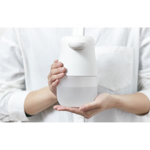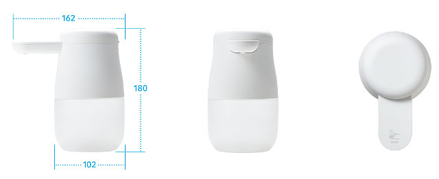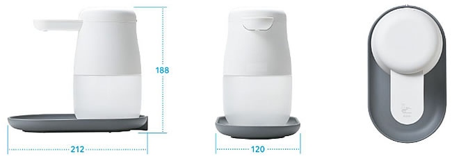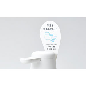 | ■特長 ●自動噴霧でシュッと消毒 手をかざすとセンサーが感知して消毒液が噴霧するので本体に触れることなく清潔に消毒することができます。 ![]() ●市販の消毒液が利用可能 専用液ではなく、手に入りやすい市販の液体アルコールタイプの消毒液が利用できます。 ※消毒液はアルコール系液体タイプを使用してください。ジェルタイプの消毒液、次亜塩素酸水は使用できません。 ![]() ●小型で大容量500ml 小さい本体ながら500mlの大容量ボトル。 乾電池式で置き場所にも困りません。 ![]() ●残量が見やすい透明ボトル 残量が見やすい透明ボトル。 消毒液の補充やお手入れが簡単にできます。 ![]() ●電池残量をLEDでお知らせ 電池残量が少なくなってきたらLEDが点灯します。 電池交換時期をひと目で確認できます。 ![]() ●電源を入れるだけの簡単操作 電源のON/OFFを切り替えるだけで、すぐに使用できます。 ![]() ●スプレー式ノズルでまんべんなく 消毒液が広範囲に噴射され、均一に消毒することができます。 ![]() ●消毒を促すメッセージパネル付き 会社の受付や店舗での使用を促すメッセージパネルが付属しています。 ※使用時の高さ:約294mm ![]() ●専用のトレーで消毒の受け皿 液垂れ防止とともに、センサー感度の安定性も向上させます。汚れたらそのまま水洗いもできます。 ![]() ●乾電池交換は工事不要で簡単 ボトルから本体をはずし、本体カバーをずらすだけで簡単に電池交換できます。 工具は一切必要ありません。 ![]() ■その他特長 ●シンプルで柔らかい形は、いろんな場所に馴染むデザイン。 やさしくみんなの手を迎えて、しっかり消毒します。 使用場所:オフィス、学校、病院、ホテル、家庭、レストラン、ショッピングモール、空港 ●手指の消毒はとっても大切 見た目はきれいでも、消毒しないない手には目に見えないばい菌やウイルスがいっぱい。 アルコール消毒は99%の除菌率 アルコール消毒は、短時間で細菌からウィルスまで幅広い微生物に有効で、除菌効果に優れています。 通常の石鹸手洗いに比べ、消毒効果が高いことが実証されています。 ■寸法図 ●本体のみ ![]() ●トレー使用時 ![]() ■仕様