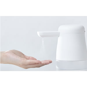 アルコールディスペンサー(自動手指消毒器) 思わず手をかざしたくなるような柔らかなフォルム。 さまざまな空間に馴染む、心地よいデザインにこだわりました。 |
