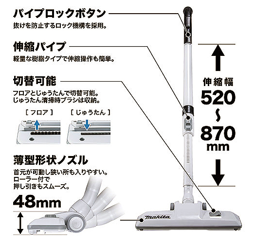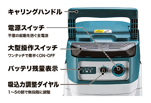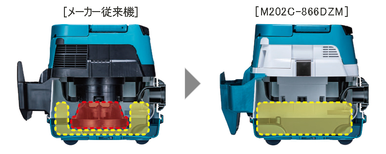 | ■特長 ●ブラシレスモータ 高性能ブラシレスモータでパワフルな吸引力を実現。 ![]() ●最大吸込仕事率 90W( 吸込力「5」) 運転音を約20%低減※、49dB(A) ※当社従来機比、 吸込力「1」の場合。吸込力「5」は56dB(A) ●モータの振動低減 サポートリングの形状を見直しモータから伝わる振動を低減。 ![]() ●冷却風の流路変更 モータ冷却風の流路と形状を見直し、運転音を低減。 ●新形状の排気口 大きな風窓形状の排気口にし、風速を下げ、風切音を低減。 ![]() ●安定走行構造 ローラ付で、移動時に後方への転倒を低減。 ![]() ●紙パック集じん容量約2倍※&タンク内スペースを拡大 フロートを無くし広いスペースを確保。紙パックが広がりやすい構造。 ※メーカー従来機比(紙パック使用時)■各部名称 ![]() ![]() ■仕様