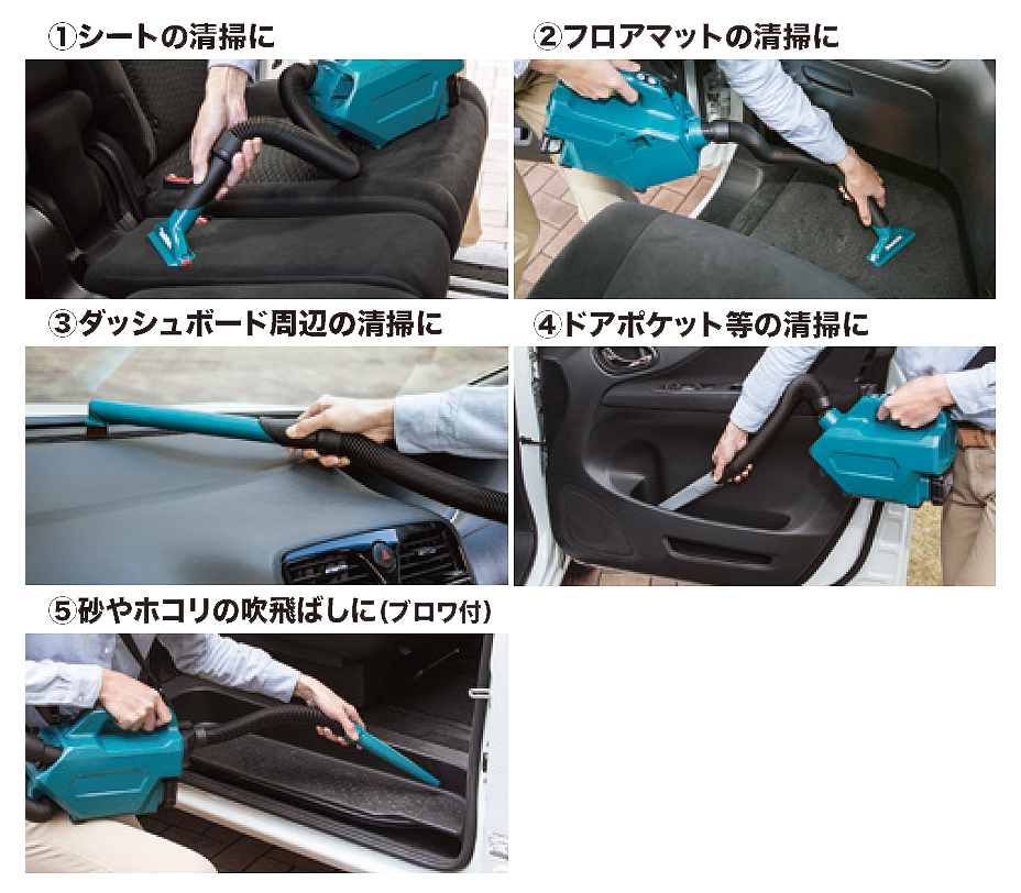 | ■特長 ●コンパクトボディ 狭い車内でもシートに置いまま快適清掃。ホースは伸縮式(最大1m) ●多彩な先端アタッチメント <シートの清掃にシートノズル(M202A-68828M)> 毛取りブラシにより糸くずも掻き取り可能。サイドのブラシで溝のゴミも掻き出し可能。 <フロアマットの清掃にマットノズル(M202A-68834M)> 先端の突起がマットのゴミを掻き出す。 <ダッシュボード周辺の清掃にソフトブラシ(M202A-68812M)> 奥まった場所にも入り込む。先端ブラシは角度変更可能。 <ドアポケット等の清掃にラバーノズル(M202A-68840M)> ラバー製なので樹脂部品を傷付けにくい。砂やホコリの吹飛ばしに。 <ブロワアタッチメント> 排気を利用し、ドアステップや隙間のゴミも吹飛ばすことも可能 ![]() ●吸引力はワンタッチスイッチで3モード切替(強 ▶ パワフル ▶ 標準) ![]() ●ソフトバッグ付 本体・バッテリ・充電器や各種ノズル等を収納可能。 ショルダーベルトは本機へ取付け可能。 ●ダストバッグ・紙パック 誤取付け防止構造で、正しく取付けないと蓋が閉まらない安心設計。 ●バッテリ切れお知らせランプ ●斜めカット吸込口(ノズルなしでも掃除しやすい) ■仕様