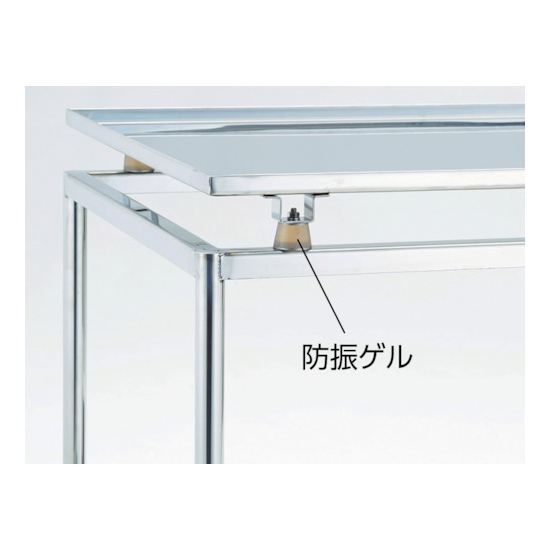 振動衝撃吸収キャスターと防振ゲルで振動を吸収するステンレス製の2段台車 | オールステンレス防振二段台車 品番 M227BSDT-9060T2S 廃番 |