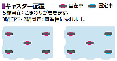 | ■仕様 ●完成品 ■材質 ●荷台:再生ポリプロピレン(PP)再生材100% ●キャスター金具:スチール(三価クロムメッキ) ●ホイール:ポリプロピレン(PP) ●車輪:エラストマー樹脂 ■製造国 ●日本 ■5輪車仕様 φ100車輪の5輪車仕様のため均等荷重は250kg。 中央に車輪があるので天板がたわみにくい。 φ100の車輪なので小径よりも段差等の乗り越え性能に優れています。 ![]() ■キャスター配置 ![]() ■新設計ボルトレス使用 キャスター取付は新設計ボルトレス。 キャスター交換が簡単・スピーディ。 ![]() ■収納式柵 収納式柵を取付可能(※オプション) 使用しない時は本体内に収納可能。 ![]() ■ひも通し穴付き 本体前後にひも通し穴を設置。 ![]() ■スタッキング可能 大型平台車だからこそコンパクトな収納スペースに。 ![]() ■連結例 ![]() ■ストッパー、上下収納式柵使用例 運搬時の一時的なキャスター固定に。 ![]() ■ハンドル(オプション)の取付可能 ![]() ![]() ■軽量 自重は700サイズ:約4.4kg 900サイズ:約6.1kg ![]() ■縦・横連結可能:縦連結及び風車連結は自在5輪仕様のみ対応。 ![]() ![]() ■タイプ