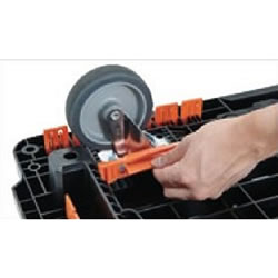 | ■用途 ●運送業、工場内の作業。 ●店舗や倉庫内での運搬作業。 ■仕様 ●組立式 ●上段均等荷重:40kg ●下段均等荷重:210kg ■材質 ●荷台:再生ポリプロピレン(PP)再生材100% ●キャスター金具:スチール(三価クロムメッキ) ●ホイール:ポリプロピレン(PP) ●車輪:エラストマー樹脂 ■ボルトレスでキャスターの取り外しが簡単 ![]() ■ストッパー使用例・収納例 ![]() ![]() ■連結 ![]() ■タイプ