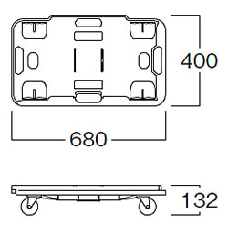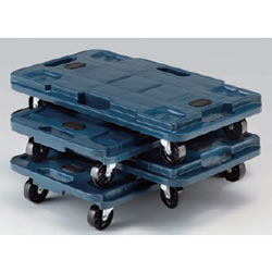スタッキング&連結が可能な軽量タイプの平台車 天板:PP キャスター:φ75(4 輪自在) 均等耐荷重:130kg 自重:2.9kg(ナイロン車の場合) |
