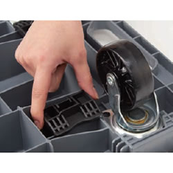| ■特長 ●互い違いに積み重ねられます。そのまま移動ができ、保管も場所を取りません。 ![]() ![]() ●工具なしでキャスター交換が簡単にできます。 ![]() ■寸法図 ![]() ■仕様