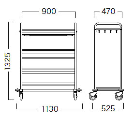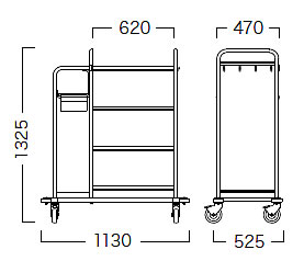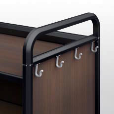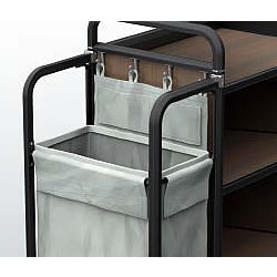 ■90ℓのごみ袋に対応したリネン回収袋付き。![]() ■用具や袋をかけるのに便利なフックが付いています。 ![]() ■積載物を落としづらい傾斜棚仕様(2・3 段目) ![]() ■壁に接触しても傷つけにくい回転式バンパーを装備。 ![]() ■サイズ