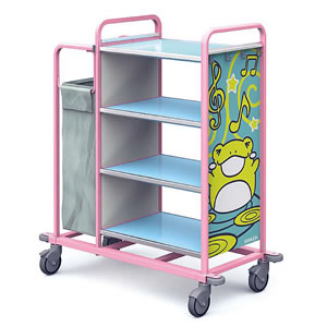シーツ・枕カバー・タオルなどリネン類の交換作業・保管に便利な専用カートです。 アルミ製で軽量なうえ、回転式バンパーやフックなど装備した、機能性・耐久性に優れたカートになっています。 木目調ブラックとイラスト付小児科向けピンクの2種類を用意しています。 |