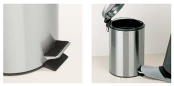 ステンレス製で安定した重量のフットペダル式ゴミ箱。トイレや洗面所などに適した材質とサイズです。 ステンレス部はクリア塗装仕上により指紋がつきにくくなっており、内箱は軽量でゴミ袋の指し替えがラクにできます。 ダンパー機能により静かにフタが閉じます。 | ステンレス足踏み式丸型ゴミ箱 品番 M2314SUS-4611470K 価格は下記をご覧ください |