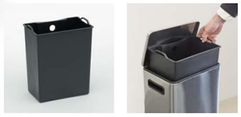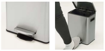 ステンレス製で安定した重量のフットペダル式ゴミ箱。トイレや洗面所などに適した材質とサイズです。 ステンレス部はクリア塗装仕上により指紋がつきにくくなっており、内箱は軽量でゴミ袋の指し替えがラクにできます。 ダンパー機能により静かにフタが閉じます。 | ステンレス足踏み式角型ゴミ箱 品番 M2314SUS-4611861K 廃番 |