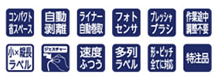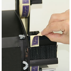| ■特長 最大幅 57mmのロールラベル用の自動ラベル剥離機です。 ラベルメーカー各社のロールラベルに対応。 様々な基材に対応。(白色 PET、透明 PET※、ネーマ、キャストコート紙、上質紙、クラフト紙、ホイル紙、和紙、ユポ、合成紙、など) 四角形、円形、星形等の自由形状、 複数列のラベルにも対応。 ラベリング作業が片手で効率良く行えます。 搬送速度 56mm/秒。ラベルセットバー(軸)の最大直径は、1インチ(約25mm)、付属のリール(ロールラベルを両側から挟む器具)の最大直径は3インチ(約76mm)です。 ご使用になるロールラベルは、巻芯の内径が1インチ以上であればラベルセットバーにセット可能。 ロールラベルをセットし、蝶ネジによってセンサー位置、押さえブラシを調整。 手前にある剥離後されているラベルを取ると次のラベルが送出、剥離されるしくみ。(使用者は、ラベルを手前方向へつまみ取るジェスチャー)シンプルで初心者も使いやすい電動ラベルディ スペンサーです。 剥離紙ゴミは自動巻き取り機構でクリーンな作業場を維持。 製品の後部 にフックがあり、作業台のバーに掛ける設置が可能(ロールラベルの外径Ø60 制限) ※透 明基材に無地デザインのラベルは、非対応。 ![]() ■主な機能 ●自動搬送、剥離 ●フォトセンサー ●プレッシャ―ブラシ ●剥離後のライナー巻き取り機構 ●AC アダプタ ●ロールラベルの巻芯内径が1インチ以上に対応 ●ラベルセットバーの最大直径1インチ(25mm) ●付属リールの最大直径3インチ(76mm) ●巻芯内径が前述以外の場合は、リール非装着でラベルセットバーにセットし使用 ![]() ■仕様