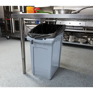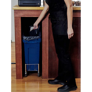 使いやすい角度に設計されたデザインが新登場。 オフィスや厨房などのカウンターに収めて、スペースを効率よく使用できる。 大きく角度のついた開口部は、カウンターからコンテナを引き出すことなく使え、作業効率アップ。 ドーリ−は、49L(13ガロン)にのみ使用可能。 |