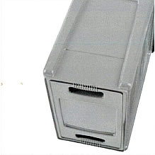 ■大きく角度のついた開口部![]() ■底面のハンドルで、コンテナ持ち上げが容易 ![]() ■ライナーをかける溝付き。 ![]() ■使用例 ![]() ![]() ■4ヶ所の気流を作るベントチャンネル(通気孔)により、ライナー持ち上げにかかる力を最大80%軽減 ![]() ■タイプ