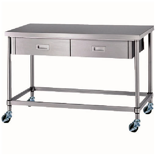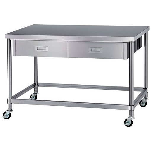 ●用途に合わせて高さ変更が可能です。(工場オプション) ●耐食性に優れたSUS304製作業台です。 ●直径φ38mm太径パイプ採用の丈夫な作業台です。 ●φ100mmナイロンキャスター付です。 |