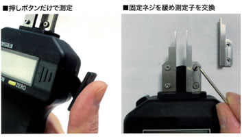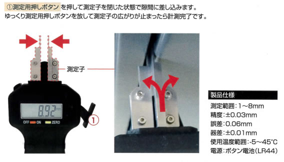 平行な隙間を測定する専用測定機器です。 ボタンを押すだけで測定子が動き、内径や内寸を測定することができます。 |