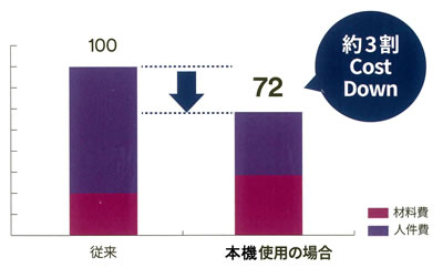 | ■使い方 専用テープは簡単に取付けできます。 ローラー先端を被着体に押し当てて転がし、トリガーを押して切断します。 ![]() ■作業性は約2倍 テープ貼付、ライナー剥離が不要なので約2倍のスピードに。 ※時間当たりの作業性は貼付面積に比例します。実際の用途でお試しください。 ![]() ■トータルコストで断然お得 作業効率の大幅改善によりトータルコストの削減が可能 従来品を100とした場合のコスト試算(繰り返し作業した場合のトータルコスト/日) ![]() ■専用テープの一例 (ご用途に合わせてその他のテープもご紹介いたします) ![]() ![]()
