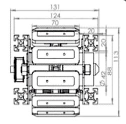 動力機構を内蔵し、外装には機械設備によく使われるアルミフレーム部品を取り付けています。 誰でも簡単に使えて、自由度の高いフレームワークが可能です。 どんなものにも取り付けられる不整地に強い足回りユニットです。 |